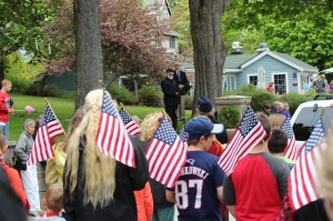 The two veterans inside the Hall emerge with wreaths and join ranks with their fellows and march down the street and stop in front of David Cooper and his microphone and amplifier, though he needs neither to be heard. After wreaths are placed on the town memorial fountain, David reads the names of every man and woman from the island, beginning with the Revolutionary War, who has served in our nation’s conflicts. The Revolutionary War list seems longer than both the Civil War and the Second World War. Names are curiously absent from the War of 1812, but, then again, the Mainers were not too enthusiastic about that War, wanting to keep trading with England. There was just one name from the Spanish-American War.
