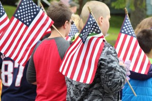 The crowd of 200 or more lining both sides of the street grows silent as the veterans march into view. There are no floats or firetrucks, as on the mainland parades, no military jeeps or marching bands. Just a dozen men, and one woman, six carrying rifles, marching in step, followed by the youngsters we pray never have to go to war.