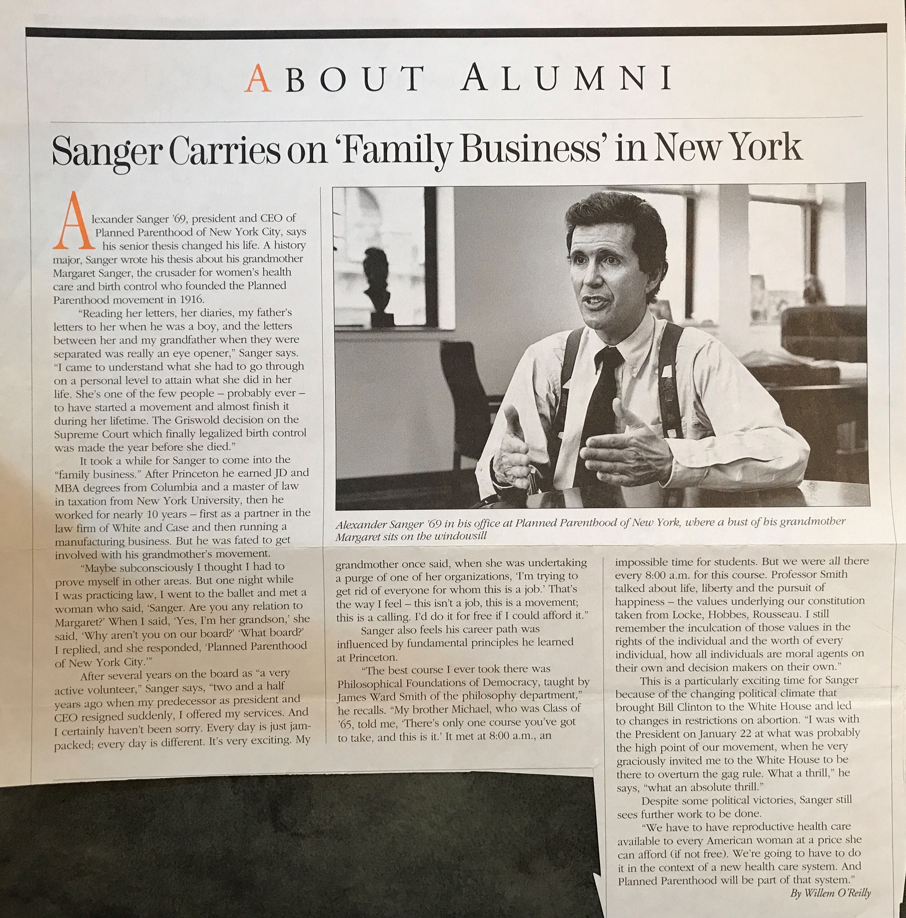 - Sanger Carries on ‘Family Business’ in New York by William O’Reilly. About Alumni. 1993.