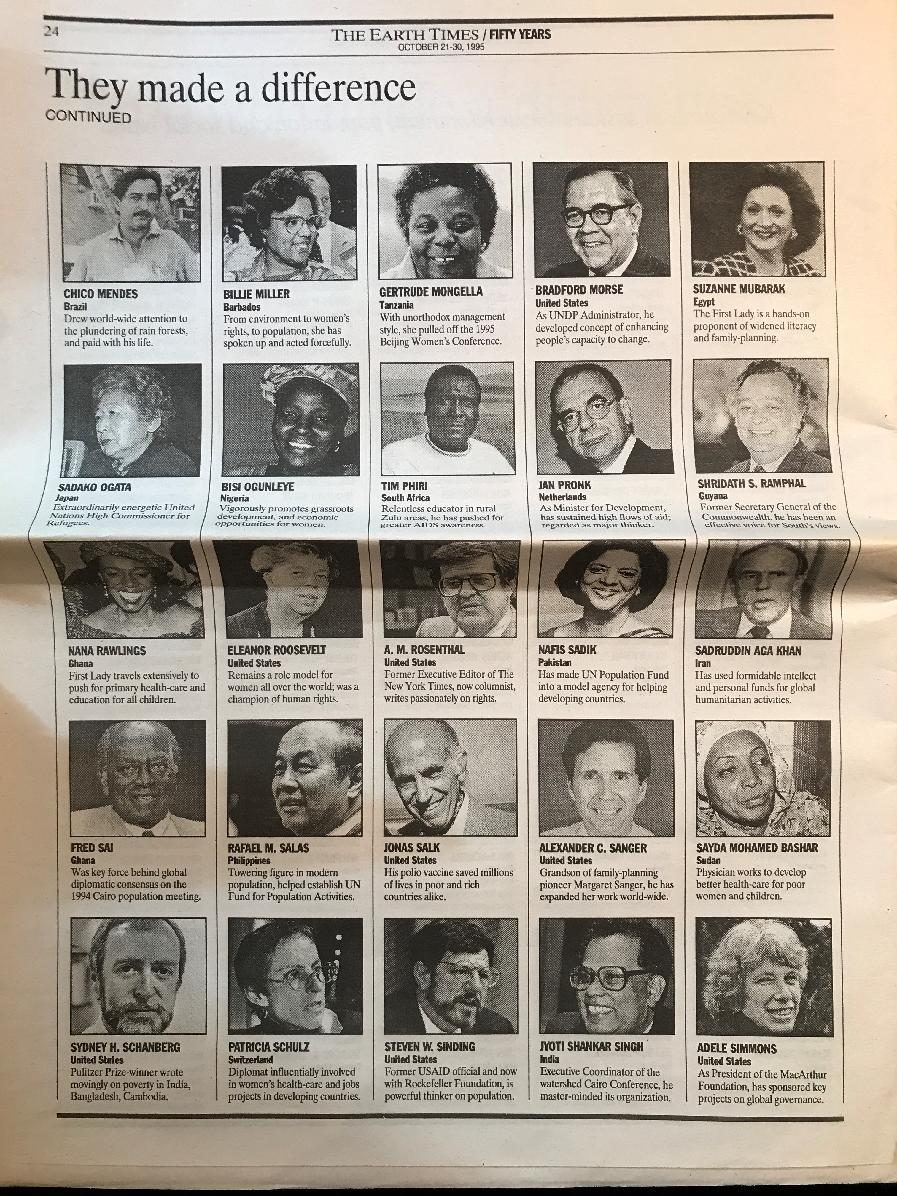 - They made a difference. The Earth Times. October 21-30, 1995.
